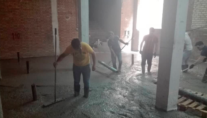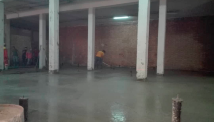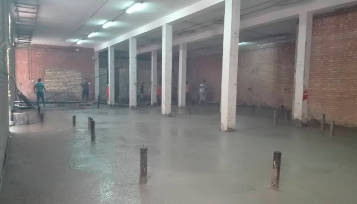 در نهایت تسطیح بتن توسط ماله پروانه ای و سینی جهت سیقلی شدن کف و همچنین ایجاد ترک های مصنوعی در راستای طولی و عرضی(کاتر)